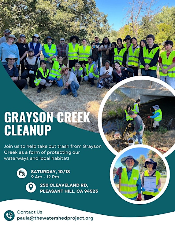 Please join The Watershed Project, the Contra Costa Resource Conservation District and volunteers from Friends of Pleasant Hill Creeks for a creek cleanup and wildlife observation event.
