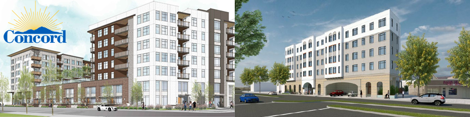 Examples of multifamily housing located within the Study Area include the Argent (left) and Galindo Terrace (right) projects currently under construction. Renderings source: City of Concord