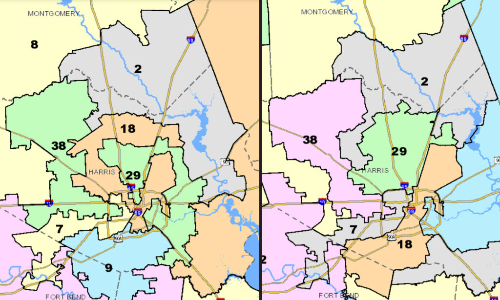 Texas Houston area Congressional District maps 2021 (left) and 2025 (right). Source: State of Texas