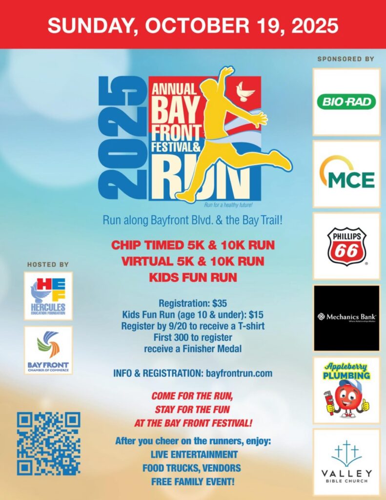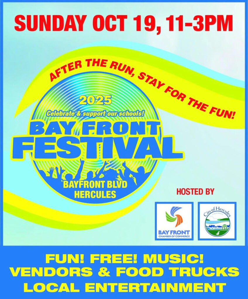 Join us Sunday, October 19 from 11AM–3PM at Bayfront Blvd. in Hercules for the 2025 Bay Front Festival — a day full of community, music, and celebration!