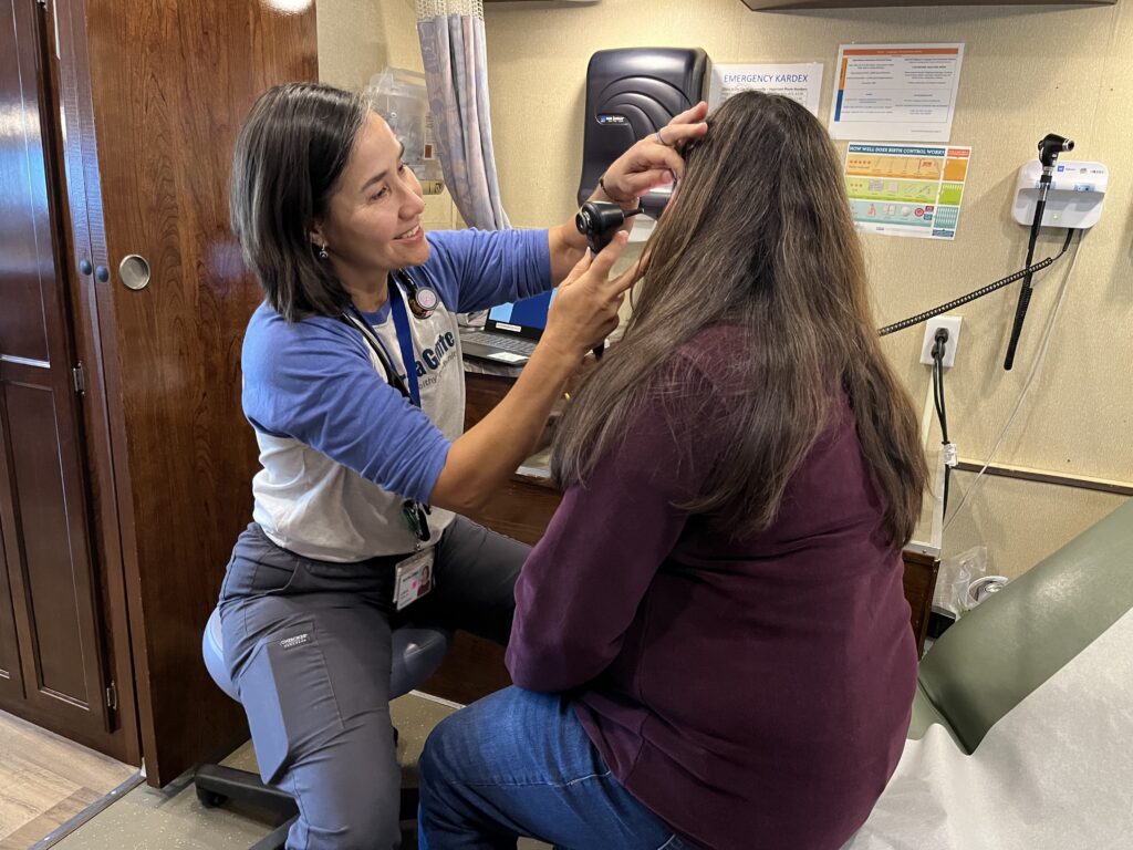 A mobile medical vehicle provides routine and urgent care for a community recovering from a flood.