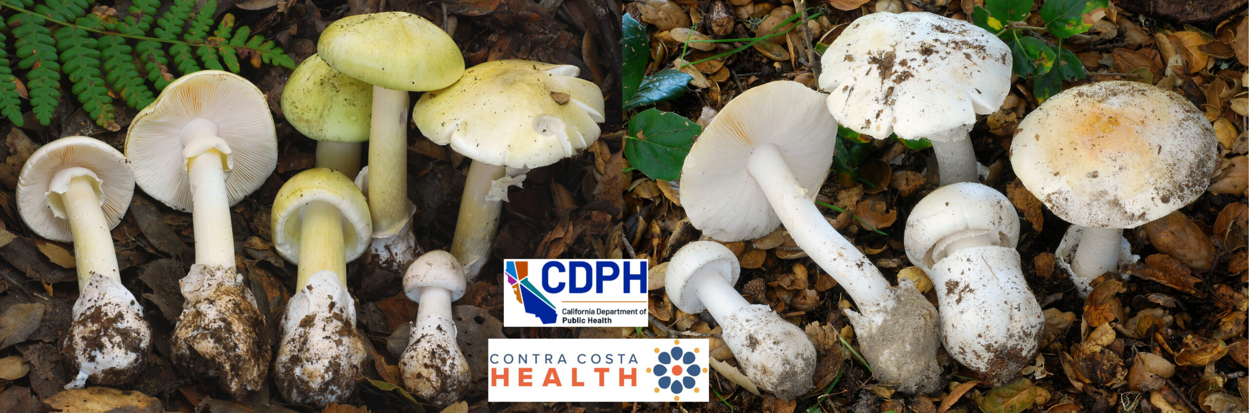 Toxic: Death Cap Mushroom (Amanita phalloides) (left) and Western Destroying Angel Mushroom (Amanita ocreata) (right). Photos: CA Dept of Public Health